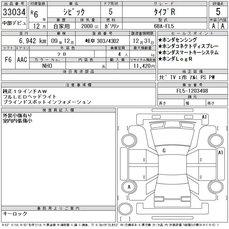 Honda CIVIC с аукциона Японии CAA Chubu лот № 33034
