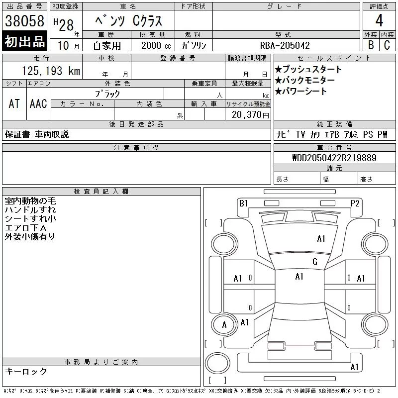 Mercedes-Benz C CLASS с аукциона Японии CAA Chubu лот № 38058