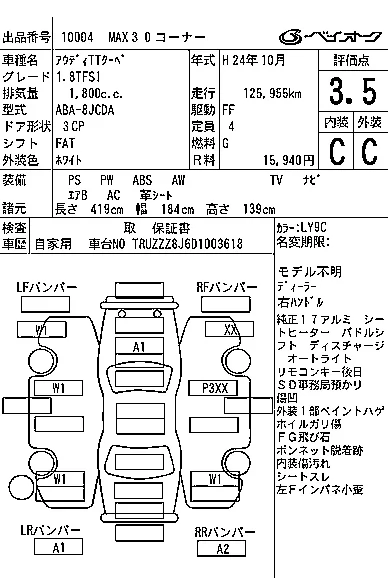Audi TT с аукциона Японии BAYAUC лот № 10004