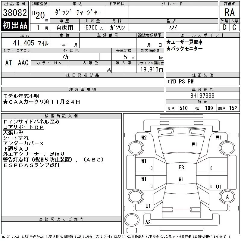 Dodge CHARGER с аукциона Японии CAA Chubu лот № 38082