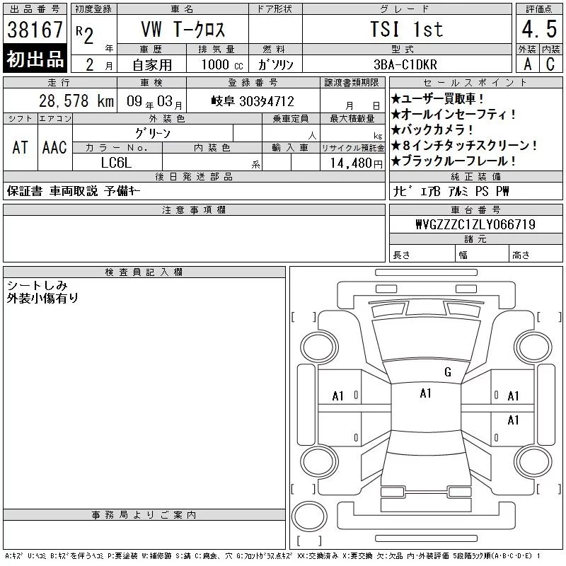 Volkswagen T-CROSS с аукциона Японии CAA Chubu лот № 38167