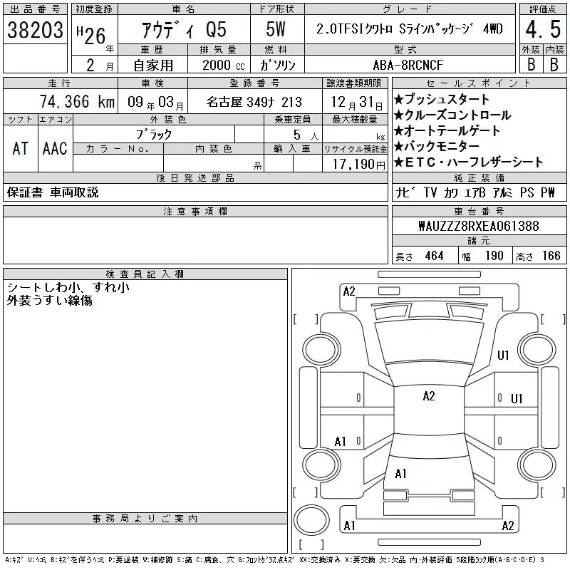 Audi Q5 с аукциона Японии CAA Chubu лот № 38203