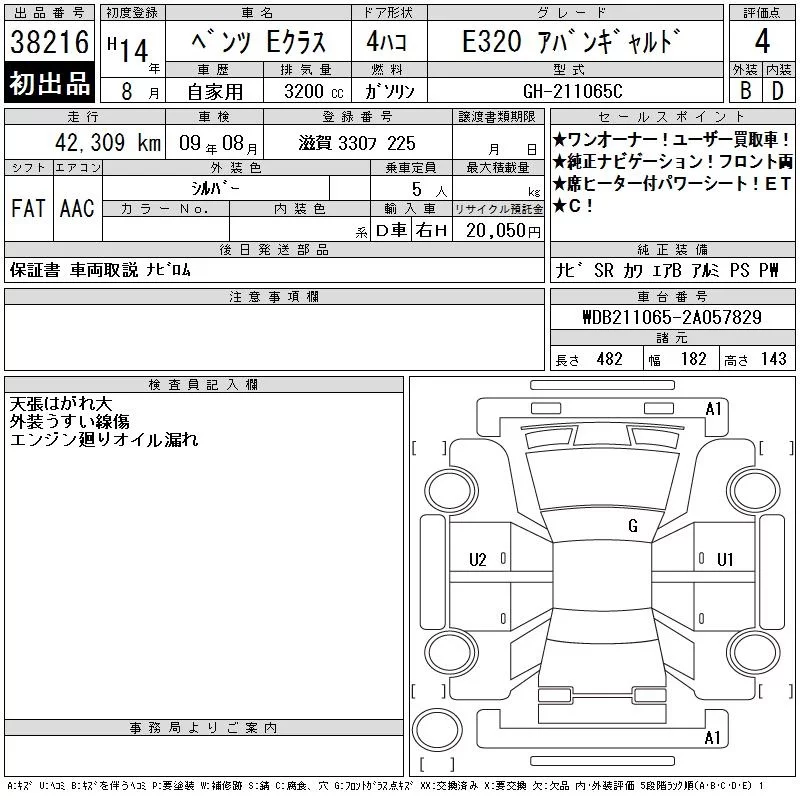 Mercedes-Benz E CLASS с аукциона Японии CAA Chubu лот № 38216