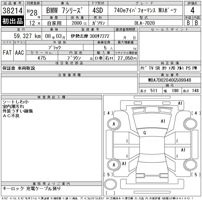 BMW 7-Series с аукциона Японии CAA Chubu лот № 38214