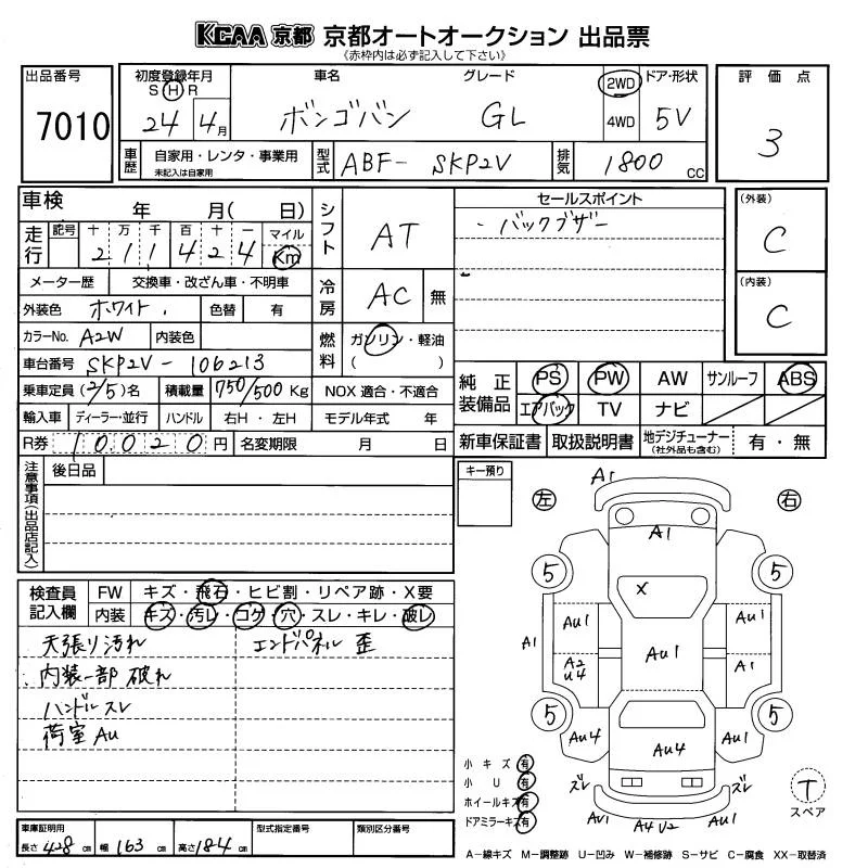 Mazda BONGO VAN с аукциона Японии KCAA Kyoto лот № 7010