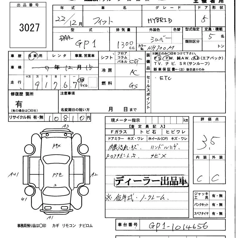 Honda FIT с аукциона Японии KCAA Minami Kyushu лот № 3027