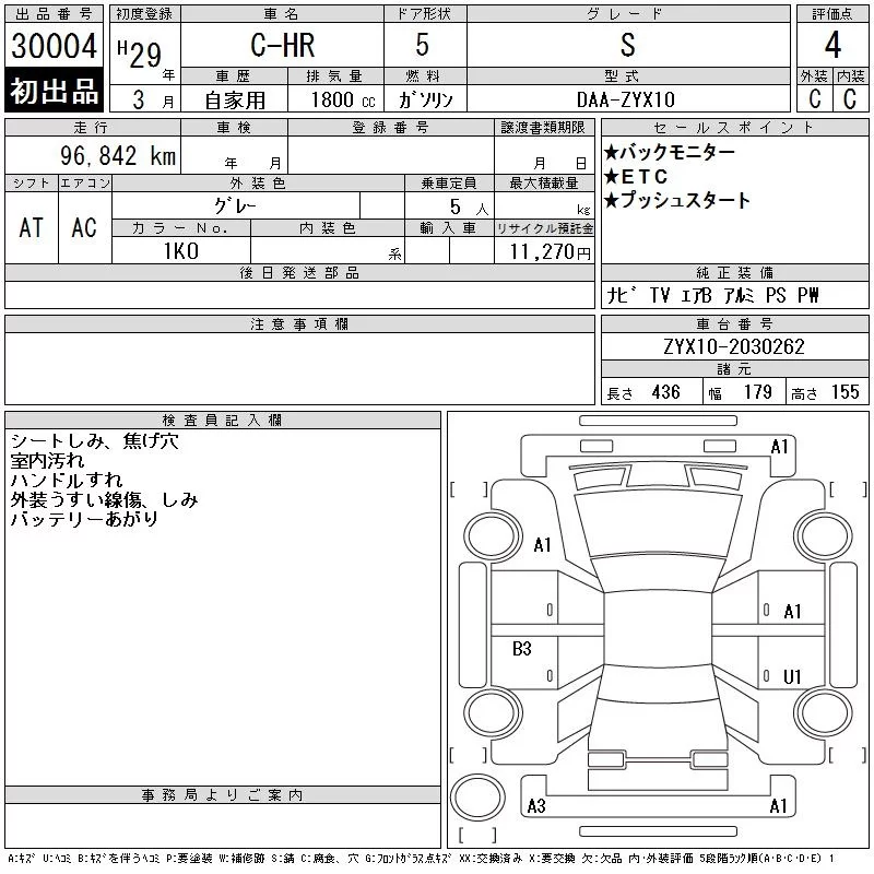 Toyota C-HR с аукциона Японии CAA Chubu лот № 30004