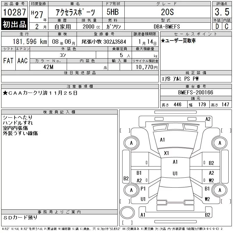 Mazda AXELA с аукциона Японии CAA Chubu лот № 10287