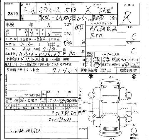 Daihatsu MIRA E S с аукциона Японии IAA Osaka лот № 2319