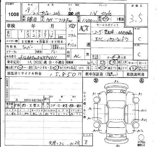 Peugeot 206 с аукциона Японии IAA Osaka лот № 1008