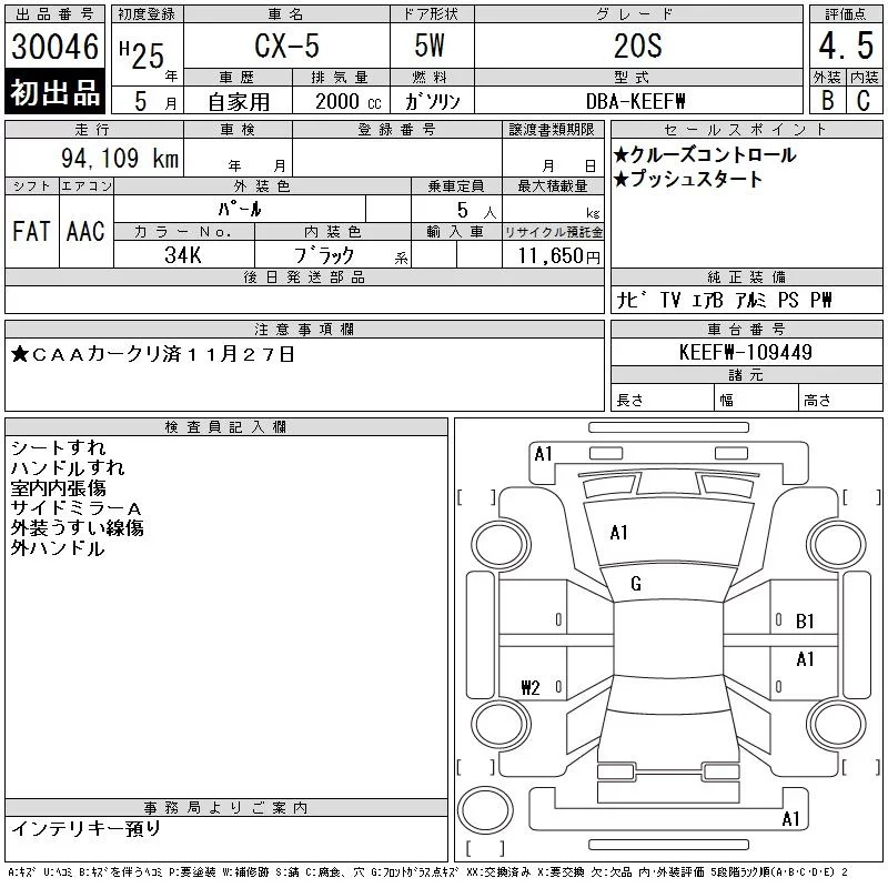 Mazda CX-5 с аукциона Японии CAA Chubu лот № 30046