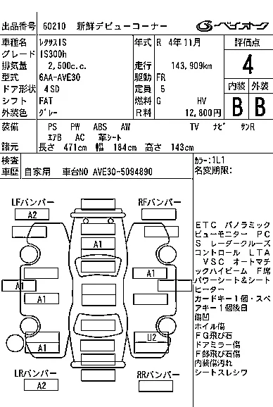 Lexus IS с аукциона Японии BAYAUC лот № 60210