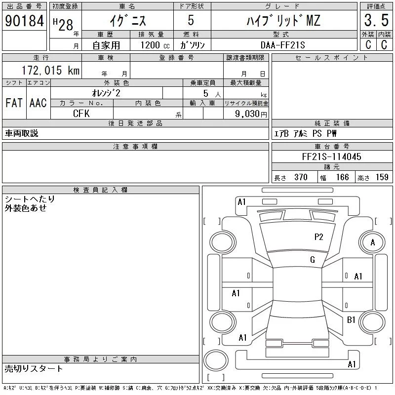 Suzuki IGNIS с аукциона Японии CAA Chubu лот № 90184