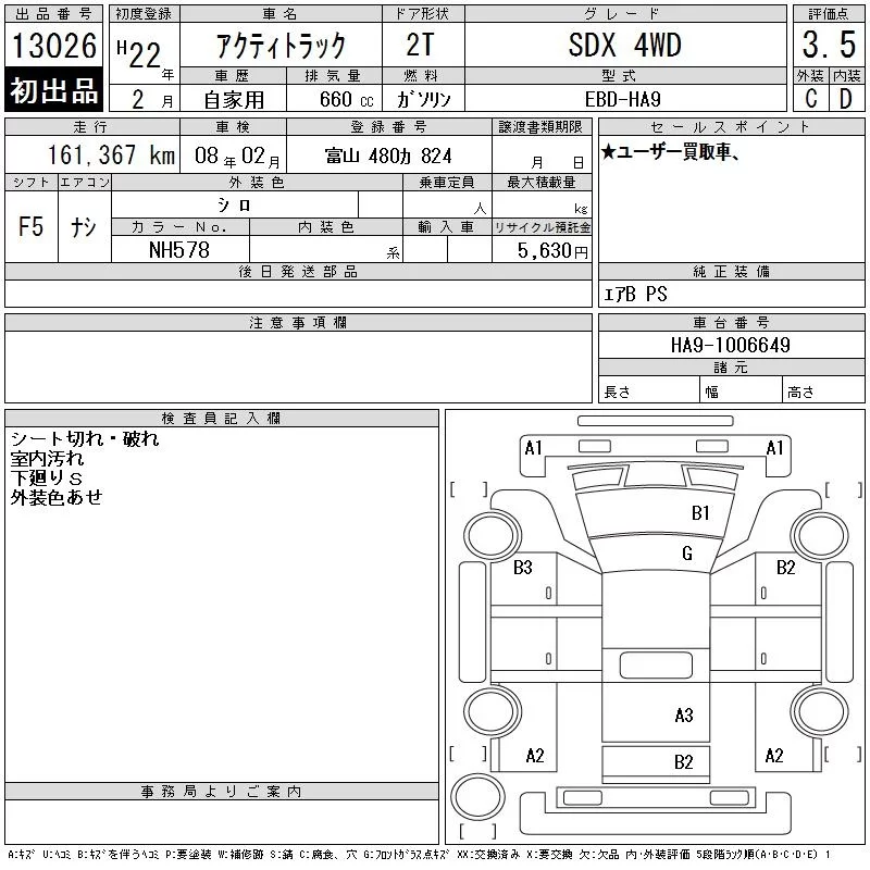 Honda ACTY TRUCK с аукциона Японии CAA Chubu лот № 13026
