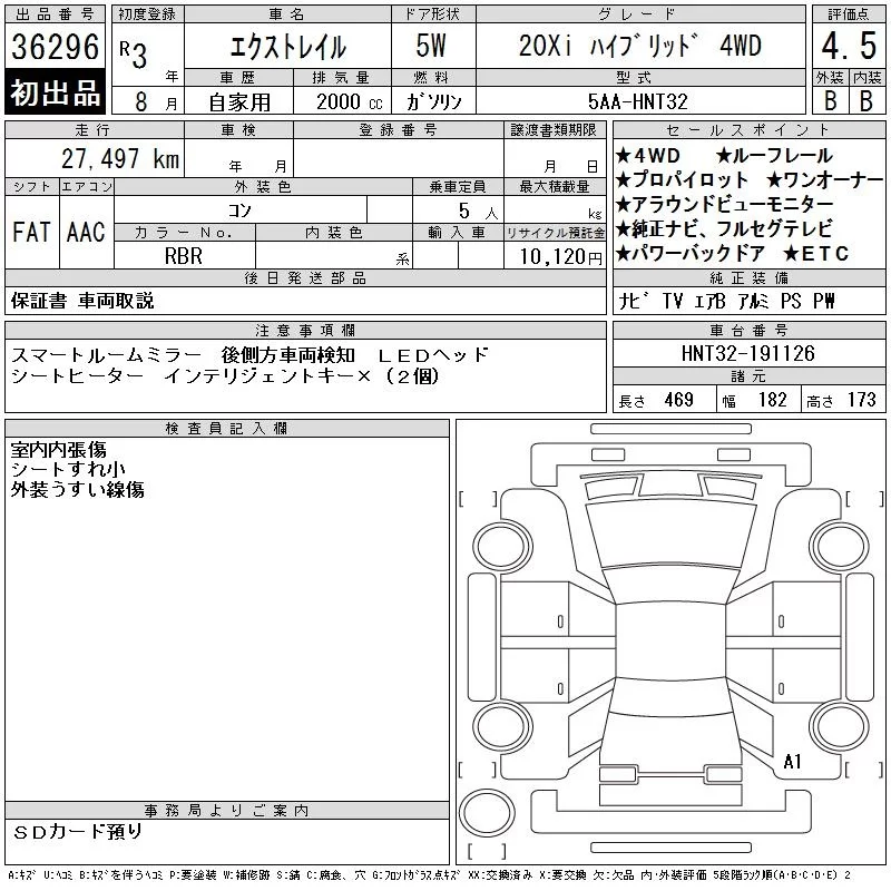Nissan X-TRAIL с аукциона Японии CAA Chubu лот № 36296