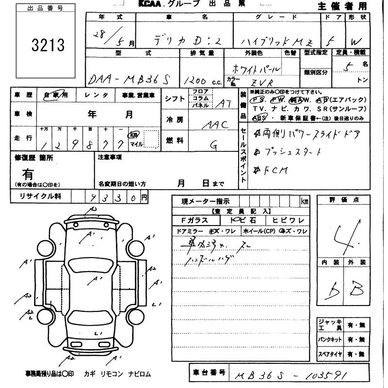 Mitsubishi DELICA D2 с аукциона Японии KCAA Minami Kyushu лот № 3213