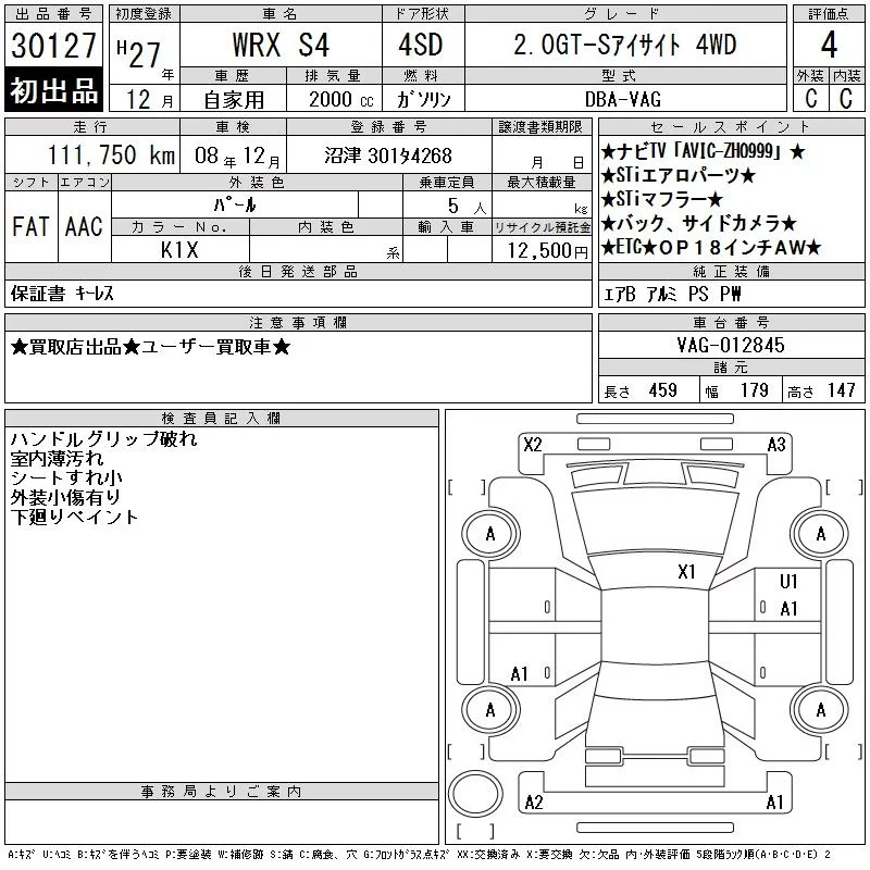 Subaru WRX с аукциона Японии CAA Chubu лот № 30127