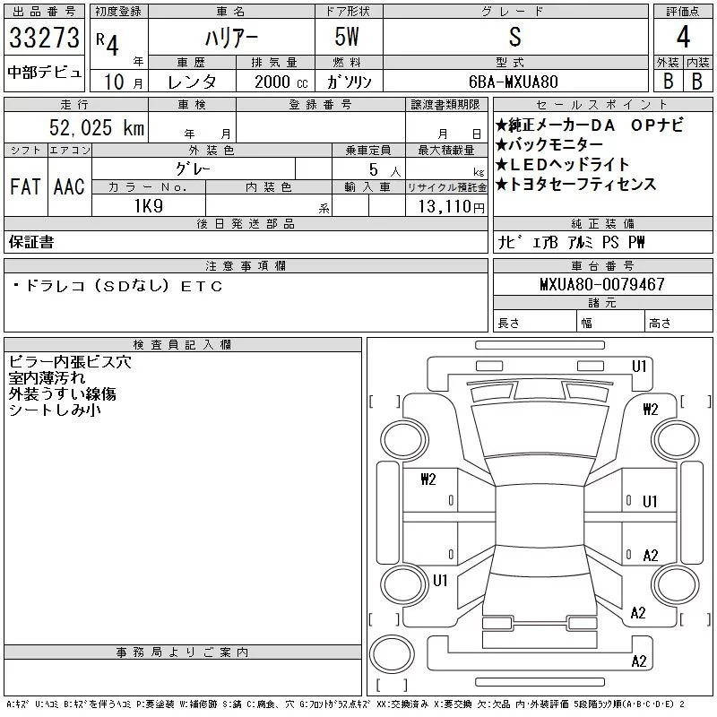 Toyota HARRIER с аукциона Японии CAA Chubu лот № 33273