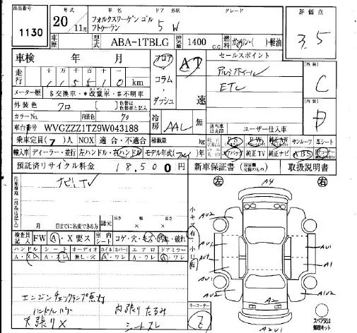 Volkswagen GOLF TOURAN с аукциона Японии IAA Osaka лот № 1130