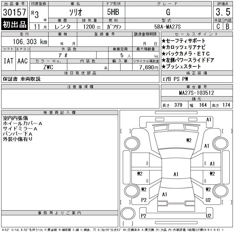 Suzuki SOLIO с аукциона Японии CAA Chubu лот № 30157
