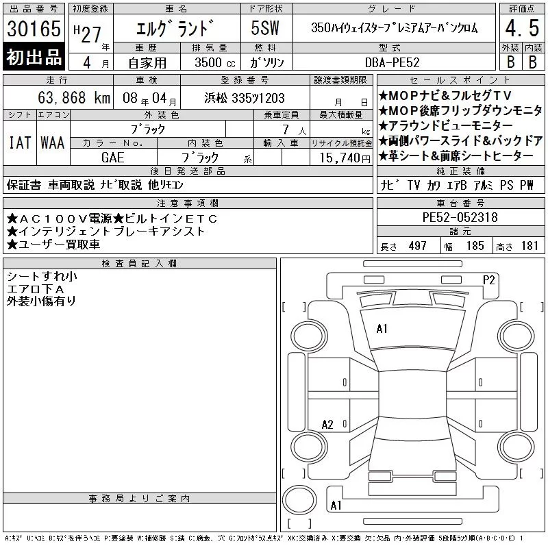 Nissan ELGRAND с аукциона Японии CAA Chubu лот № 30165