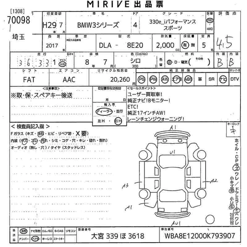 BMW 3-Series с аукциона Японии MIRIVE Saitama лот № 70098