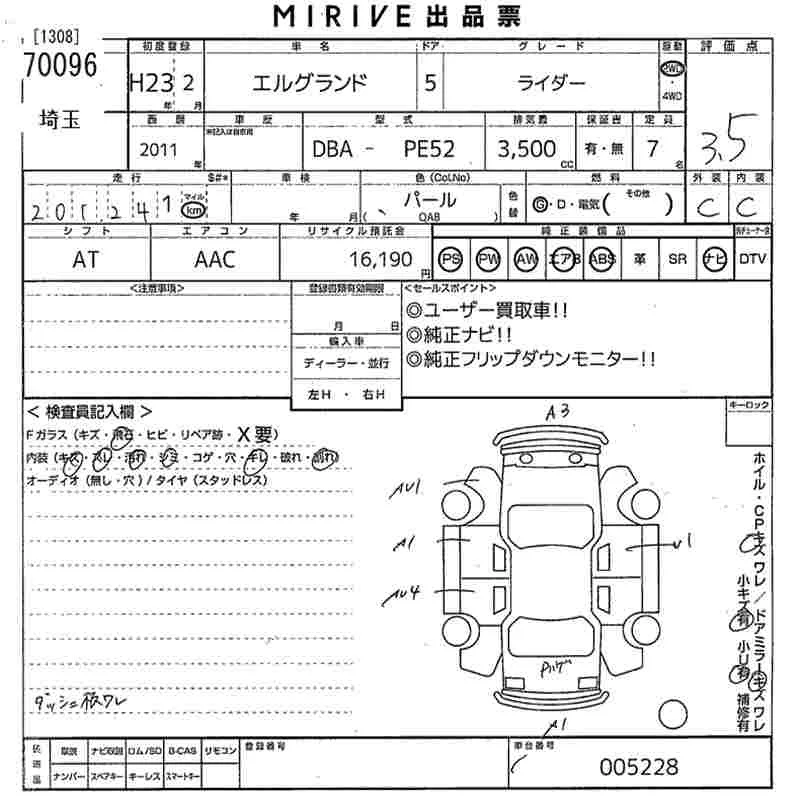 Nissan ELGRAND с аукциона Японии MIRIVE Saitama лот № 70096