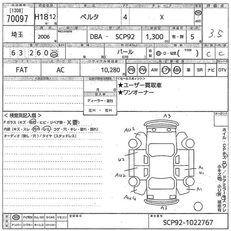 Toyota BELTA с аукциона Японии MIRIVE Saitama лот № 70097