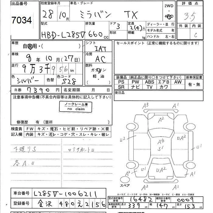 Daihatsu MIRA с аукциона Японии JU Ishikawa лот № 7034