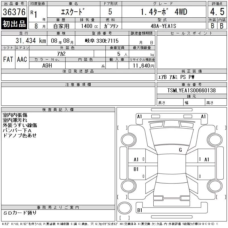 Suzuki ESCUDO с аукциона Японии CAA Chubu лот № 36376