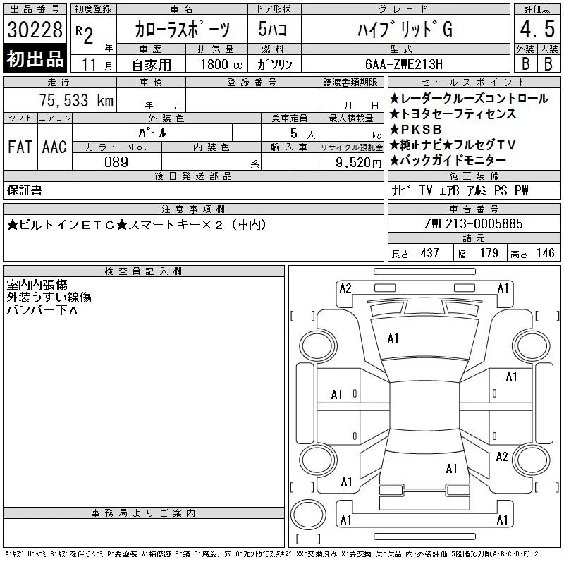 Toyota COROLLA SPORT с аукциона Японии CAA Chubu лот № 30228