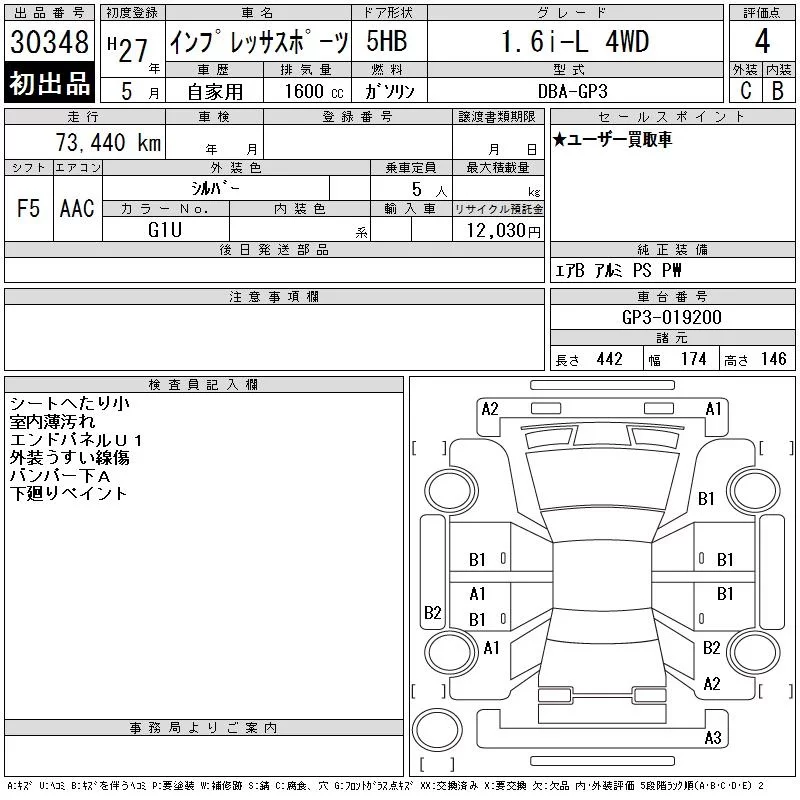 Subaru IMPREZA с аукциона Японии CAA Chubu лот № 30348
