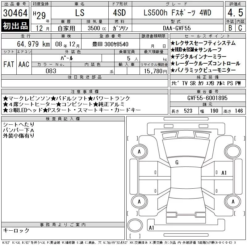 Lexus LS с аукциона Японии CAA Chubu лот № 30464