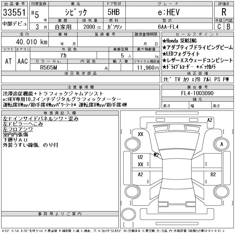 Honda CIVIC с аукциона Японии CAA Chubu лот № 33551