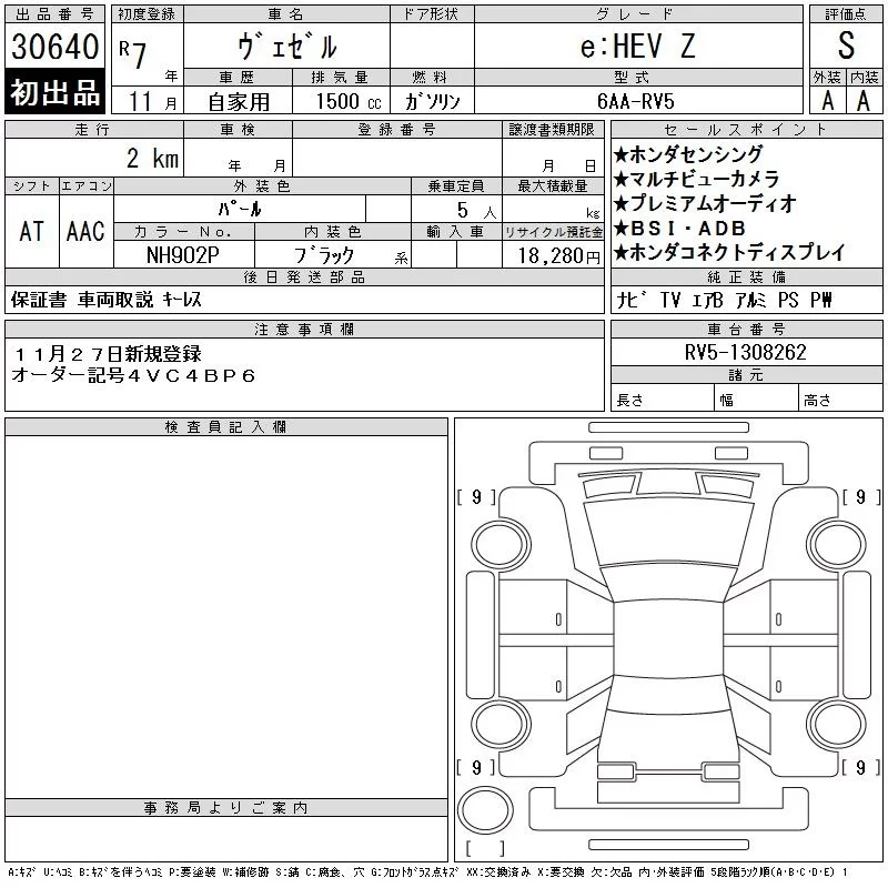 Honda VEZEL с аукциона Японии CAA Chubu лот № 30640