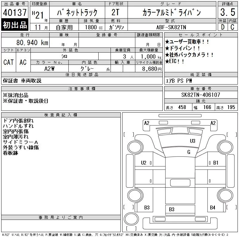 Nissan VANETTE TRUCK с аукциона Японии CAA Chubu лот № 40137