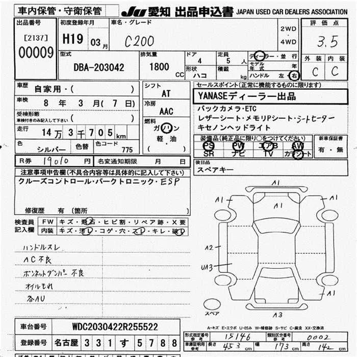 Mercedes-Benz C CLASS с аукциона Японии JU Aichi лот № 9