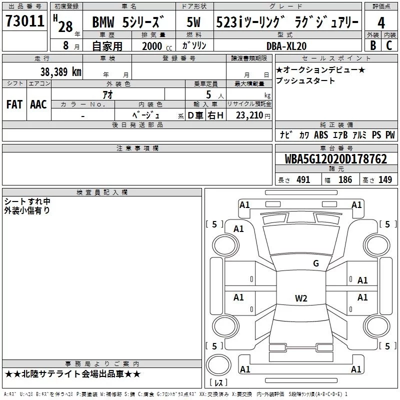BMW 5-Series с аукциона Японии TAA Chubu лот № 73011