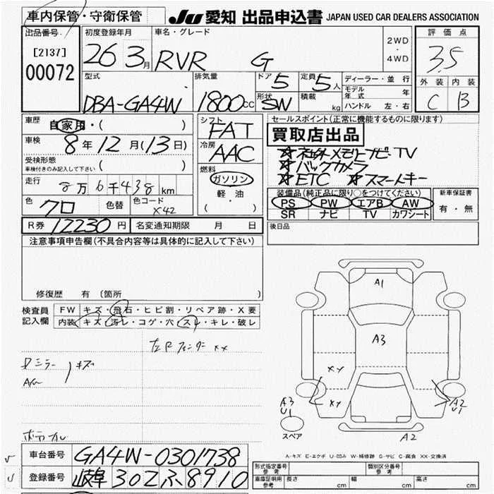 Mitsubishi RVR с аукциона Японии JU Aichi лот № 72