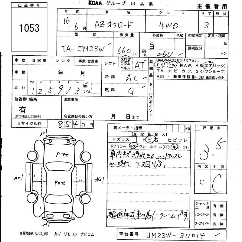 Mazda AZ-OFFROAD с аукциона Японии KCAA Fukuoka лот № 1053
