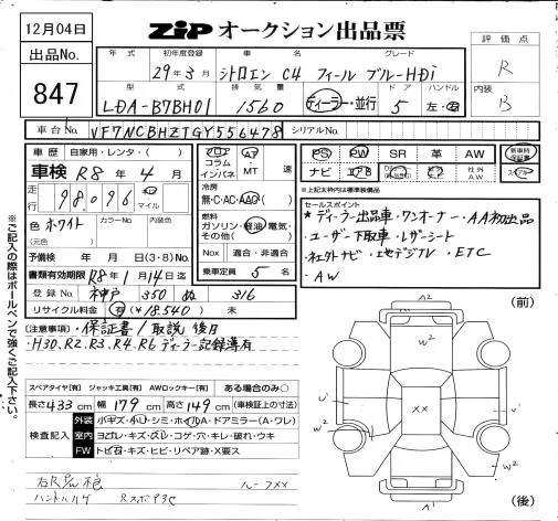 Citroen C4 с аукциона Японии ZIP Osaka лот № 847