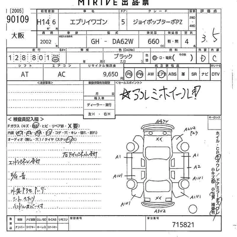 Suzuki EVERY WAGON с аукциона Японии MIRIVE Osaka лот № 90109