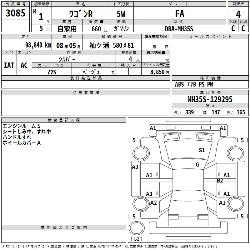 Suzuki WAGON R с аукциона Японии TAA Kanto лот № 3085