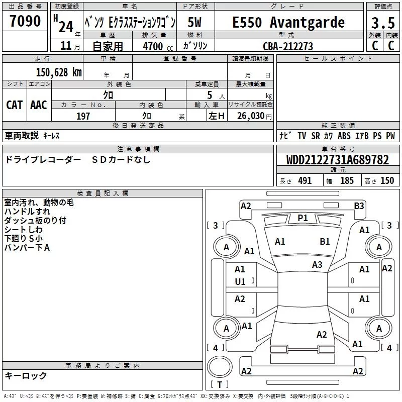 Mercedes-Benz E CLASS WAGON с аукциона Японии TAA Tohoku лот № 7090