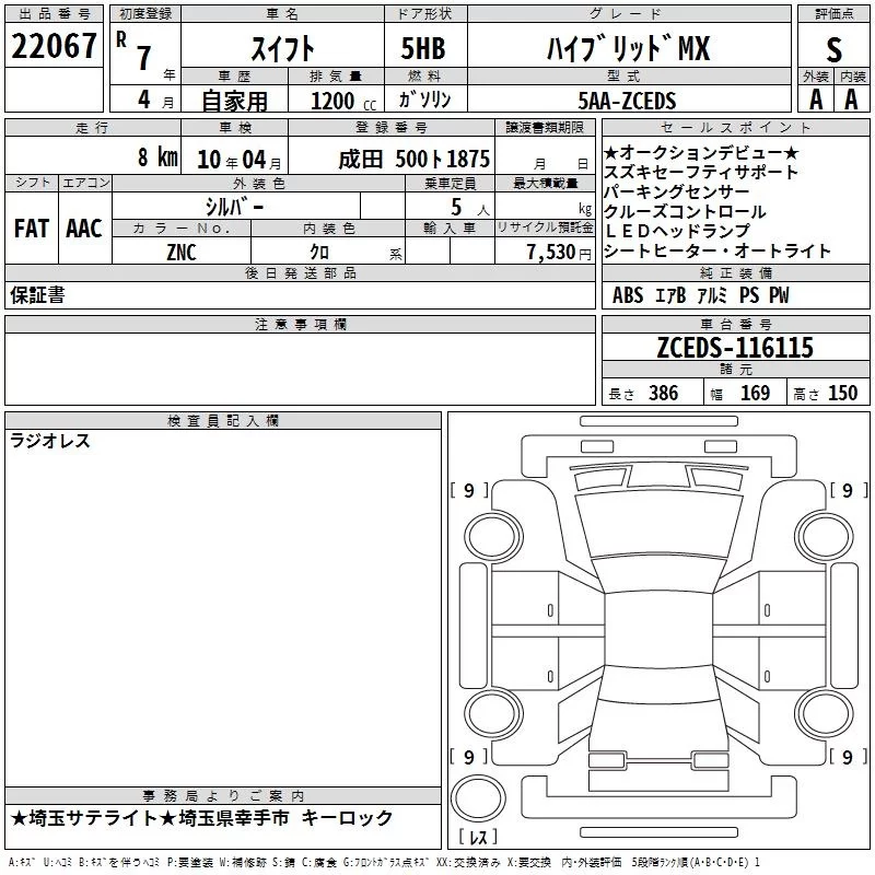 Suzuki SWIFT с аукциона Японии TAA Kanto лот № 22067