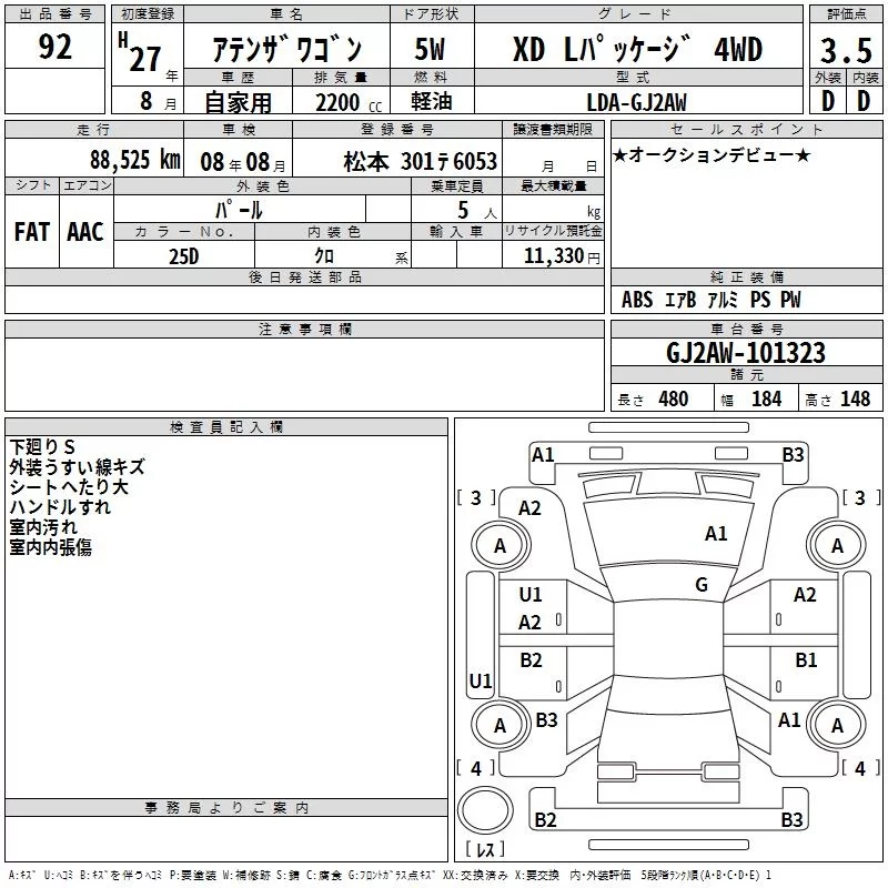 Mazda ATENZA WAGON с аукциона Японии TAA Chubu лот № 92