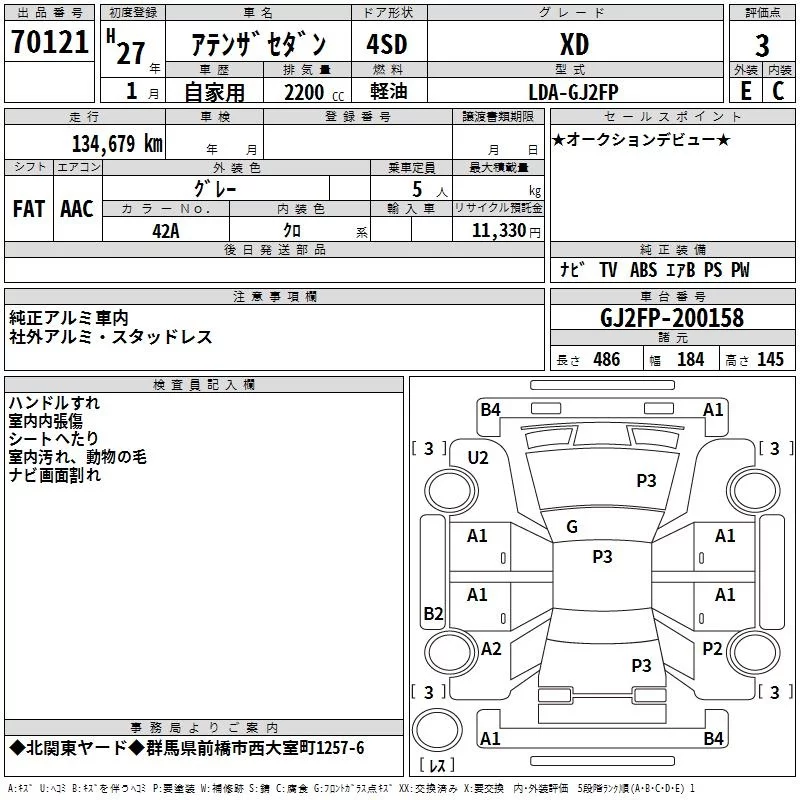 Mazda ATENZA SEDAN с аукциона Японии TAA Kanto лот № 70121