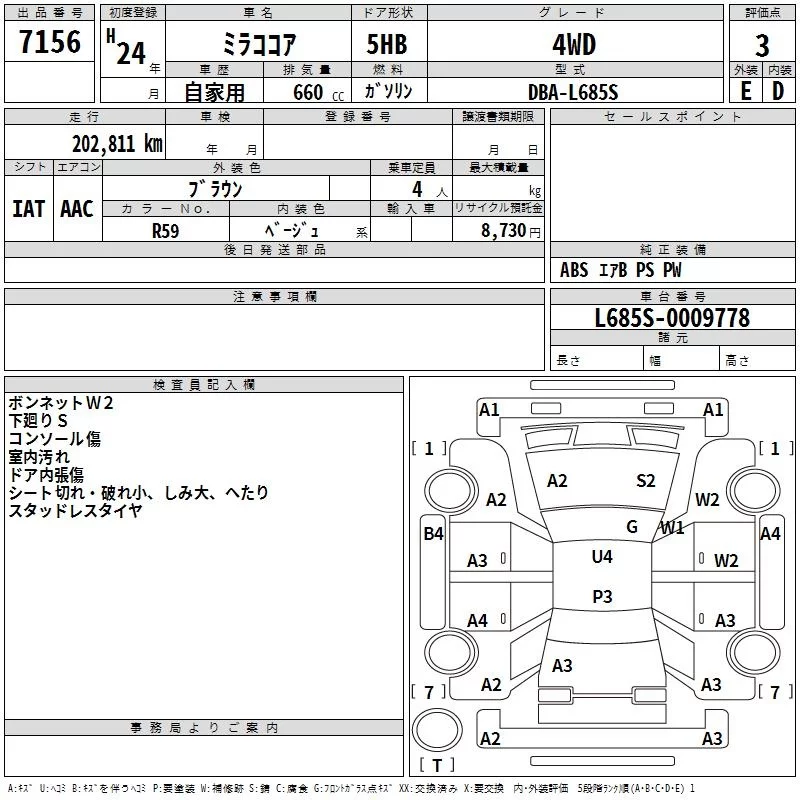 Daihatsu MIRA с аукциона Японии TAA Tohoku лот № 7156