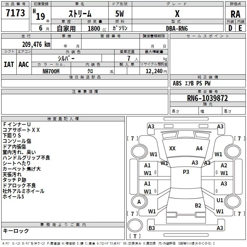 Honda STREAM с аукциона Японии TAA Tohoku лот № 7173