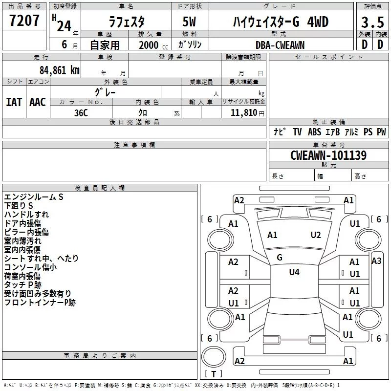 Nissan LAFESTA с аукциона Японии TAA Tohoku лот № 7207